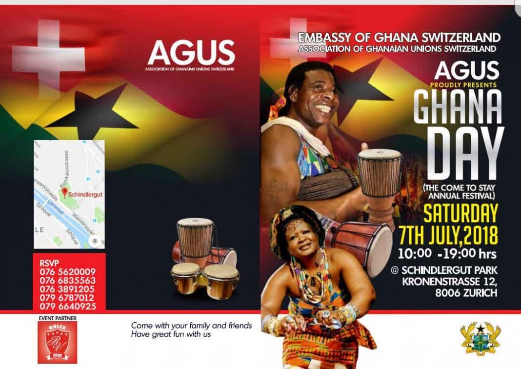 Ghana is set to showcase its uniqueness in the heart of Switzerland, Zurich to be precise. This novelty is championed by AGUS (Association of Ghana Unions, Switzerland). The event christened Ghana Day, is meant to showcase the rich cultural heritage of Ghana, whilst giving Ghanaians born or domiciled there a unique opportunity to experience true Ghanaianess often displayed at cultural celebrations. It will also market the cultural heritage of Ghana to Switzerland, which can reflect directly in tourism.