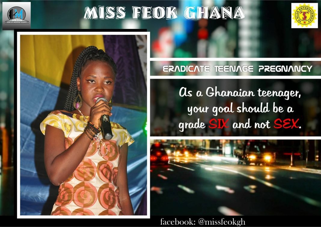 It therefore comes as no surprise that the reigning queen, Miss Winnifred Azantilow (Miss Foek 2016) has championed a social campaign christened “ Books Before Babies” to help eradicate teenage pregnancy in the Builsa districts:Builsa North and Builsa South. Her choice of project was necessitated by the unfortunately rising incidents of teenage pregnancies in the districts, hence the need to use her influence as a beauty queen to salvage the situation before it degenerates.